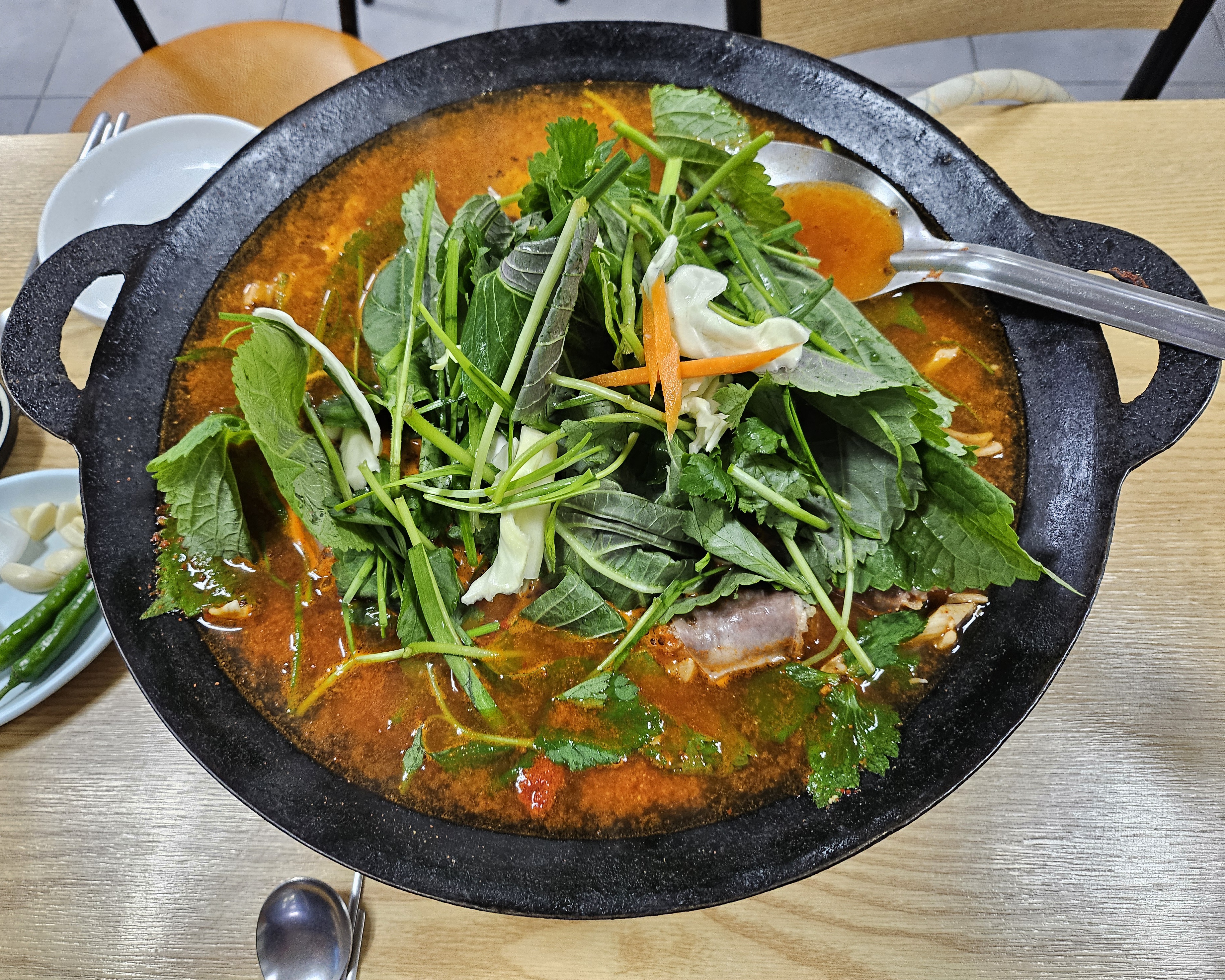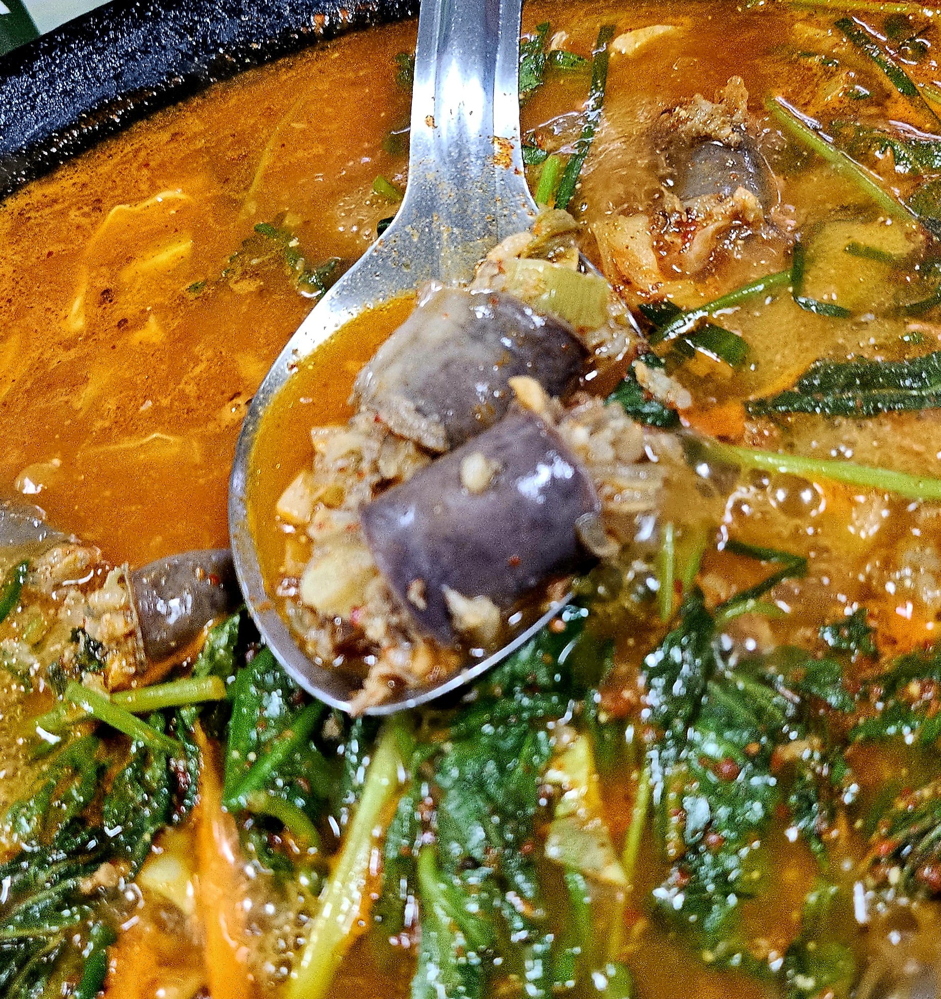 순대전골의 육수에는 들깨가 많이 들어가 고소하고 깔끔한 국물에 적당히 매운맛으로 매운걸 못 드시는 분들도 드실 수 있습니다.