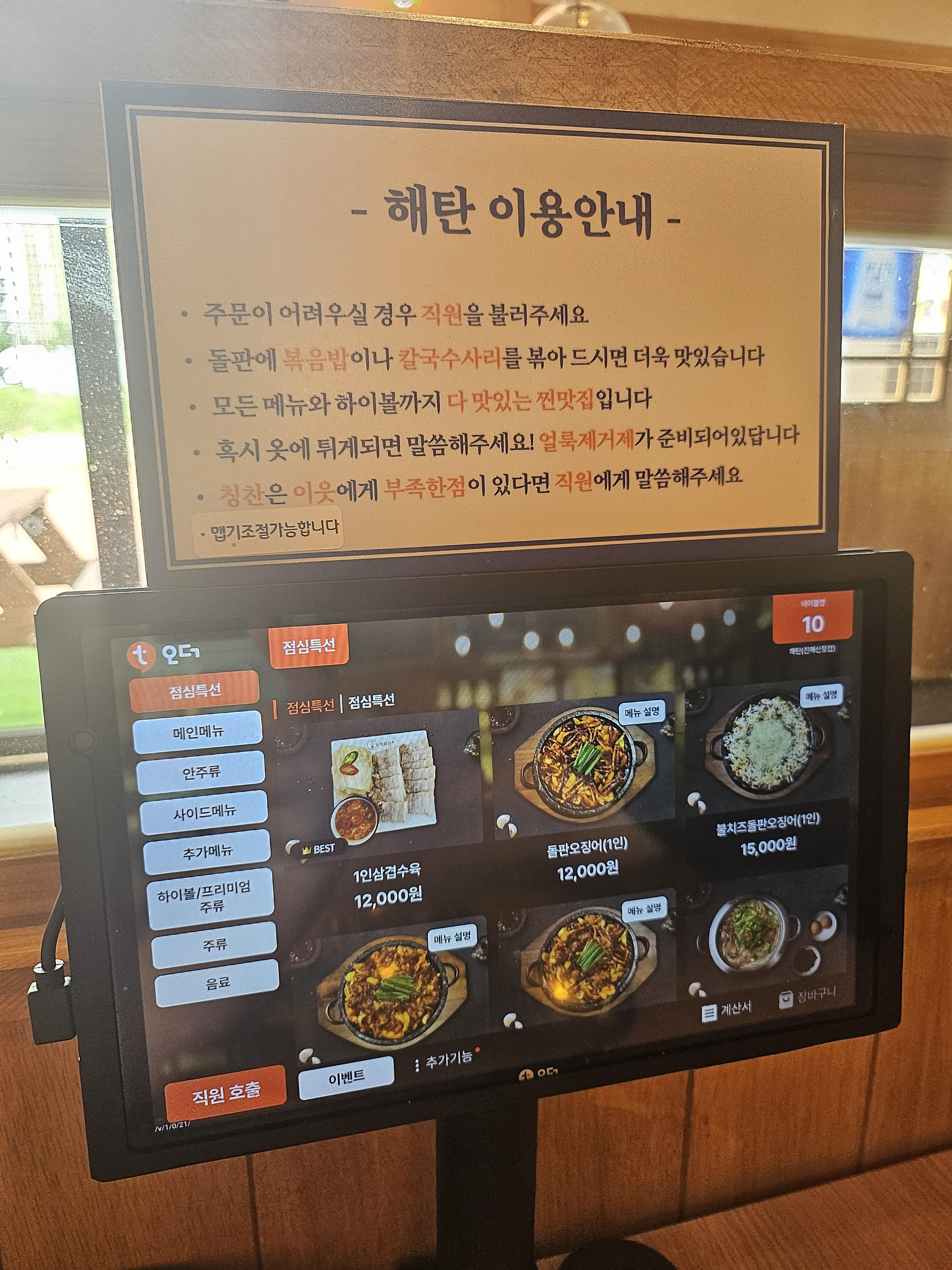 주문은 테이블마다 있는 태블릿으로 주문을 하면 됩니다.