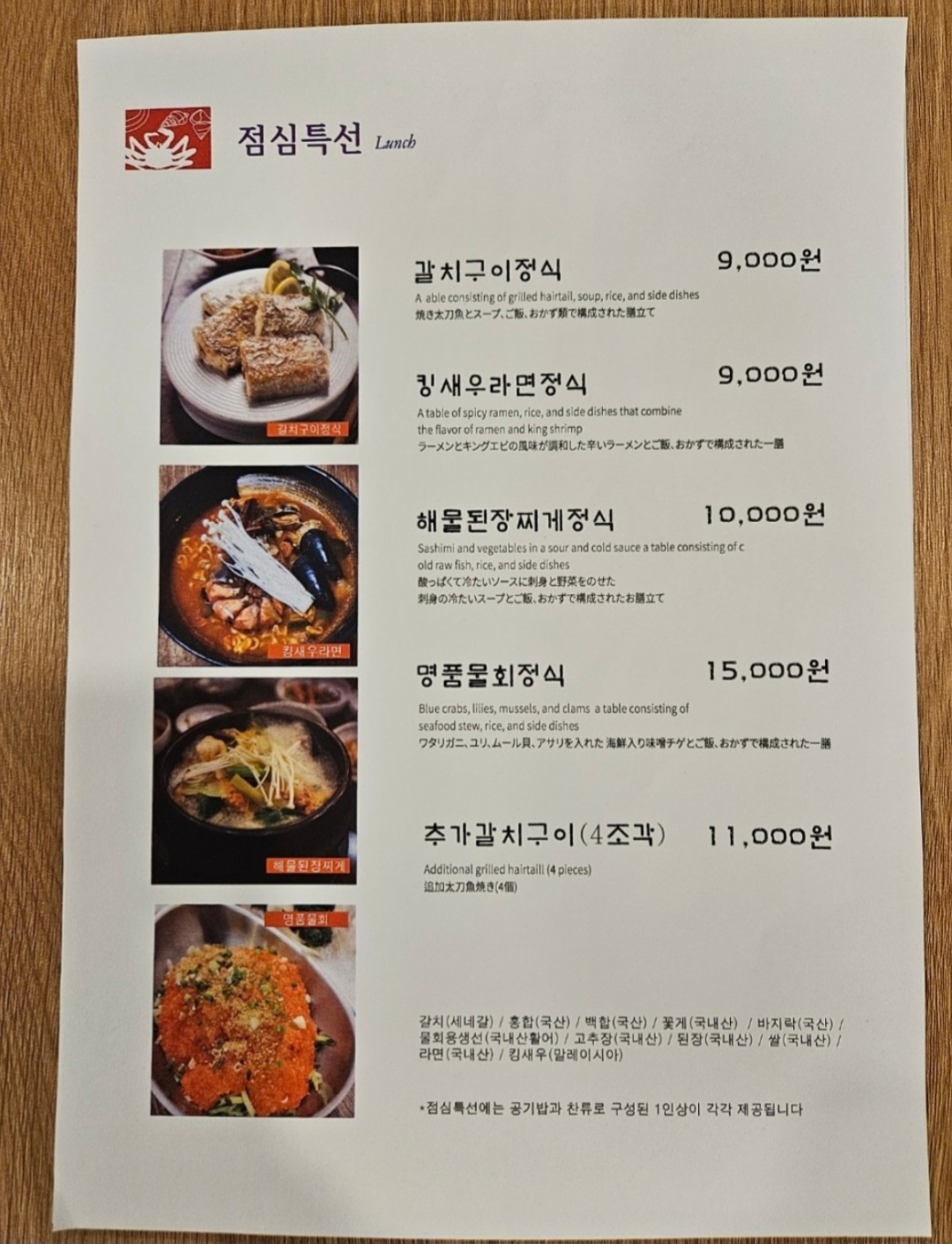 밑반찬은 추가비용이 있으니 참고하세요.