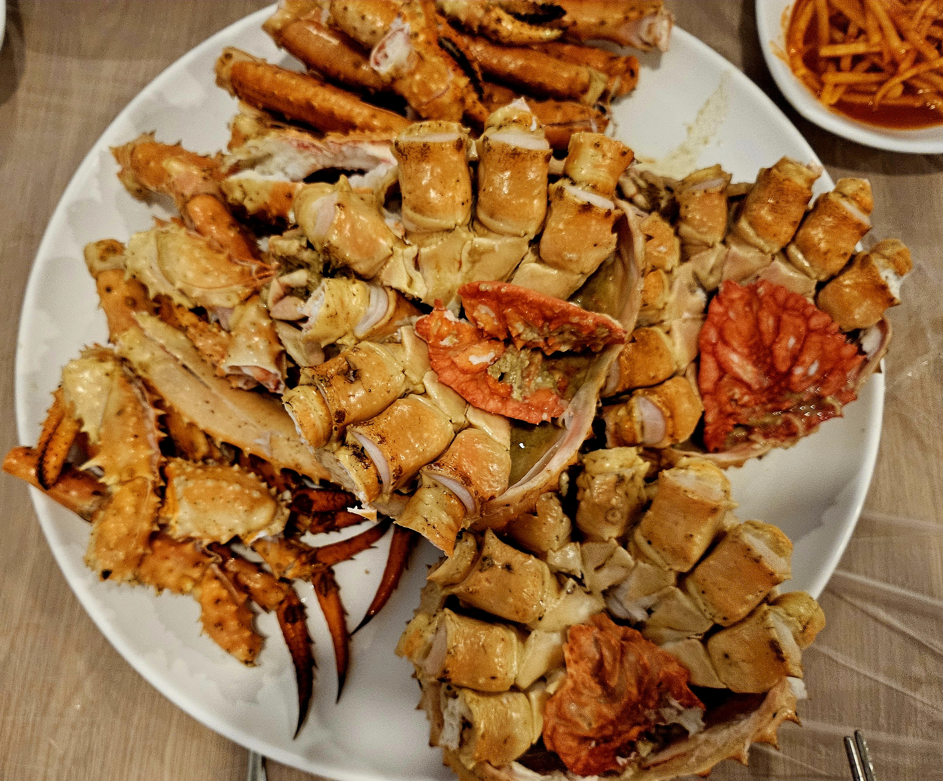 붉은색이 진할수록 신선도가 좋다는 킹크랩은 새빨간 몸통과 집게가 먹기 좋게 손질되어 나와서 먹기도 좋았습니다.