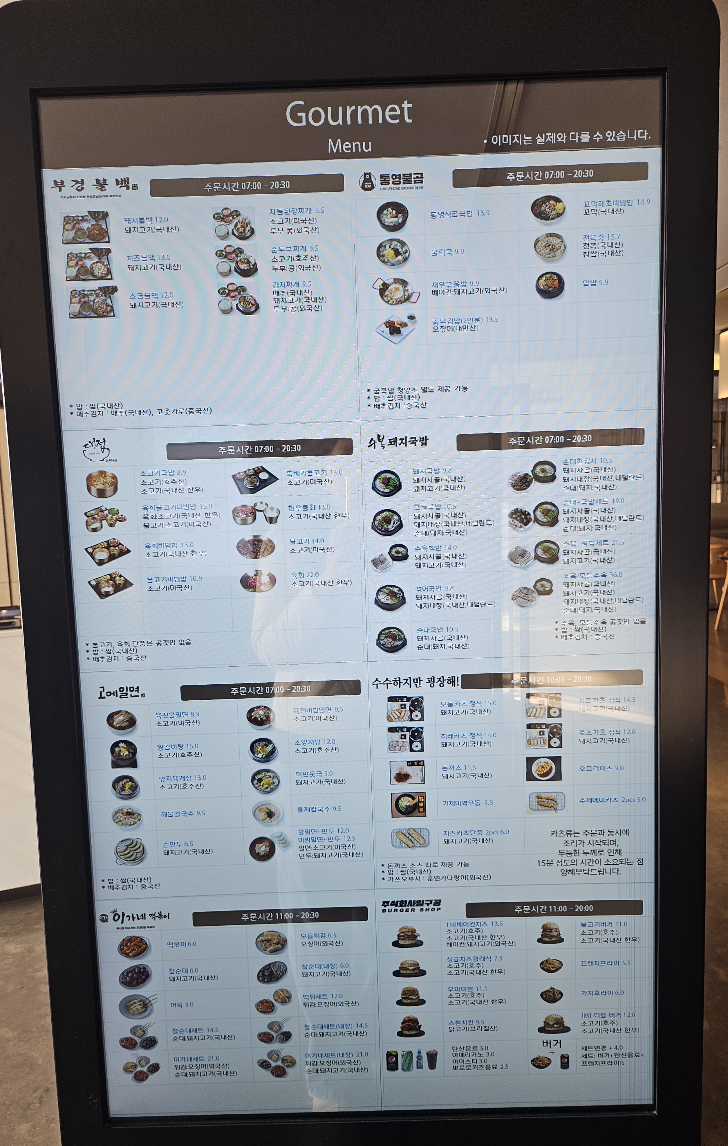 한식,양식,밀면,분식,버거,국밥,백반등 다양한 메뉴들이 입점이 되어서 골라먹는 재미가 있어요.