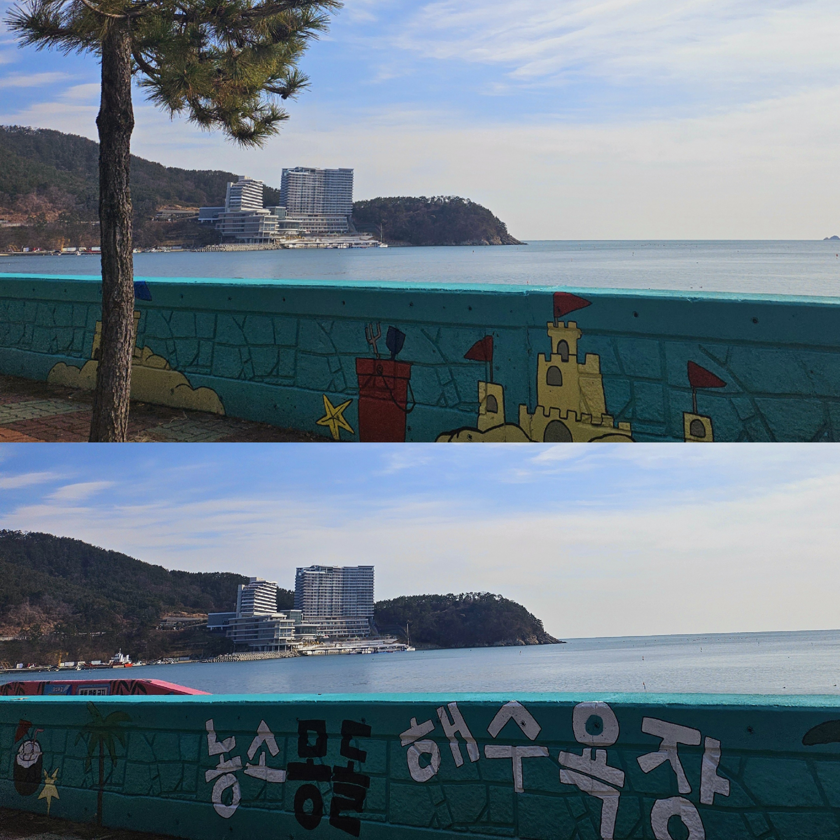 파아란 하늘과 맞닿은 농소 몽돌 해수욕장을 지나가는데 너무 너무 이뻤어요.
