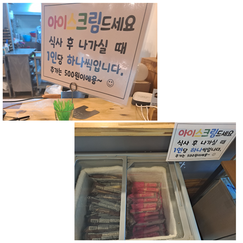 식사후 나가실 때는 후식 서비스로 아이스크림도 1인당 1개씩도 공짜입니다.