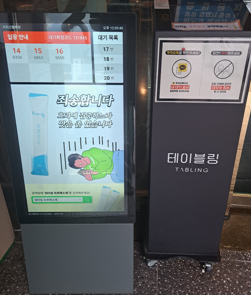 입구에서 테이 블링에 접수를 하고 기다립니다.