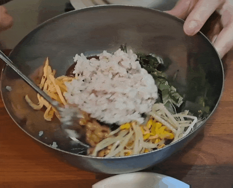 밥과 청국장을 넣어서 함께 비벼 드시면 한 그릇 뚝딱 꿀맛입니다.