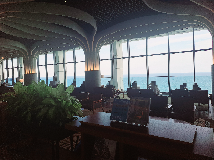 기장 아난틴힐튼 라운지는 뷰는 훌륭하지만 역광이라서 사진이 어둡게 나와서 아쉬웠습니다.