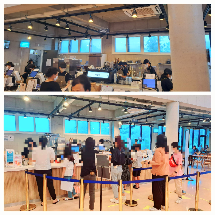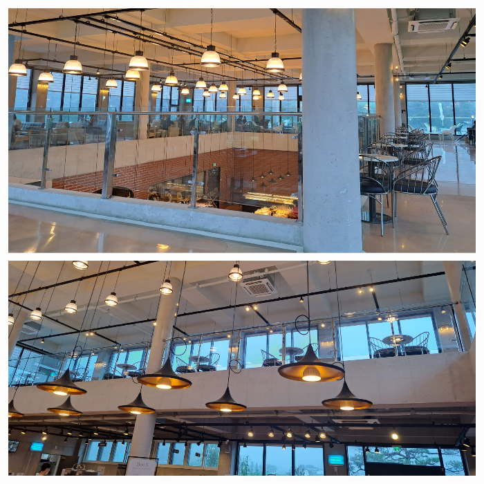 요즘 카페들은 이런 확 트인 개방감 있는 아키텍처가 많은 것 같습니다.