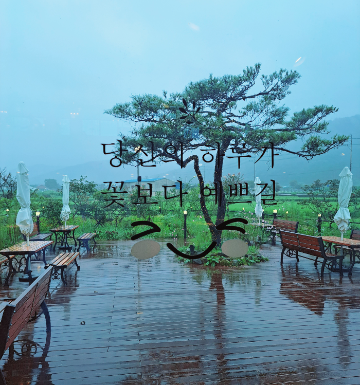 비에 젖은 야외 테이블 모습들이 운치 있고 이뻤습니다.