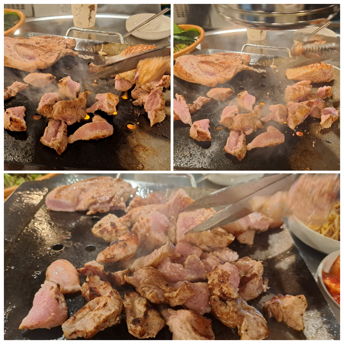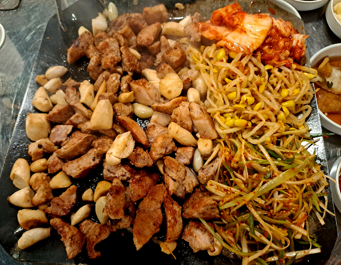고기에 콩나물, 파무침, 김치 얹어서 먹어도 맛나고 상추랑 깻잎에 싸 먹어도 너무 맛나요.