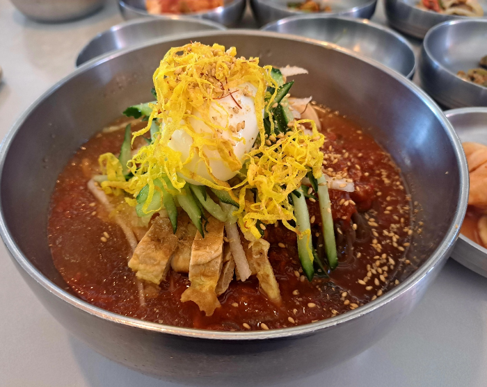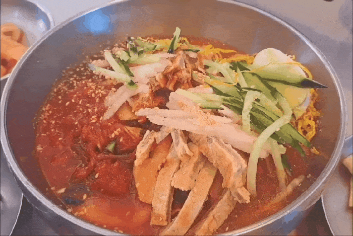 물 비빔냉면은 보기만 해도 너무나 먹음직스러운 비주얼입니다.