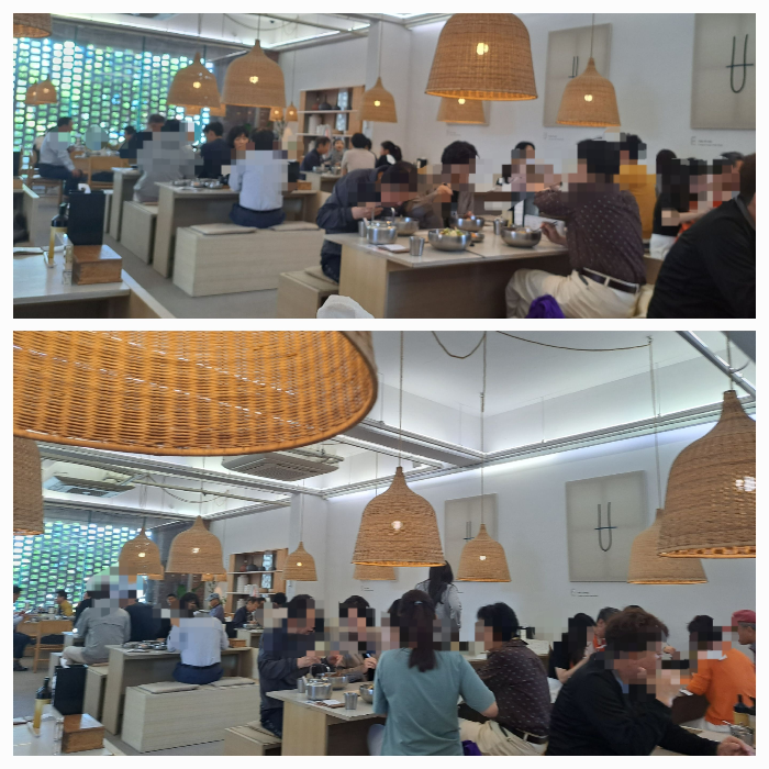 깔끔한 인테리어가 멋진 홀에는 널찍널찍한 테이블 배정에 넓은 식당 안에 사람들이 꽉 차 있습니다.