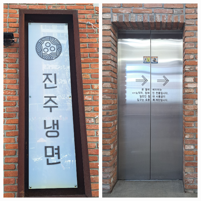 부산 대연동 진주냉면은 벽돌 건물로 외관부터 대형 카페 느낌으로 웅장합니다.