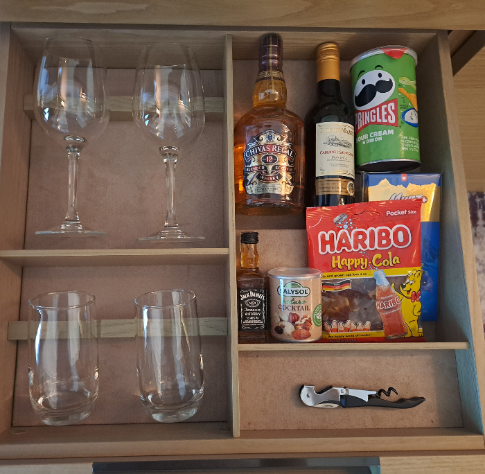 2단 : 와인잔, 와인, 유료 주류 및 과자