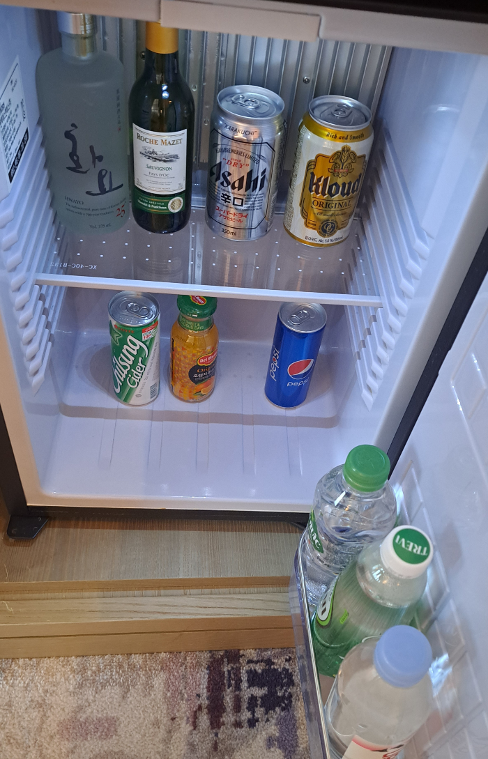 유료로 판매하는 냉장고 안에 음료들과 과자들 가격은 모두 아시죠?
