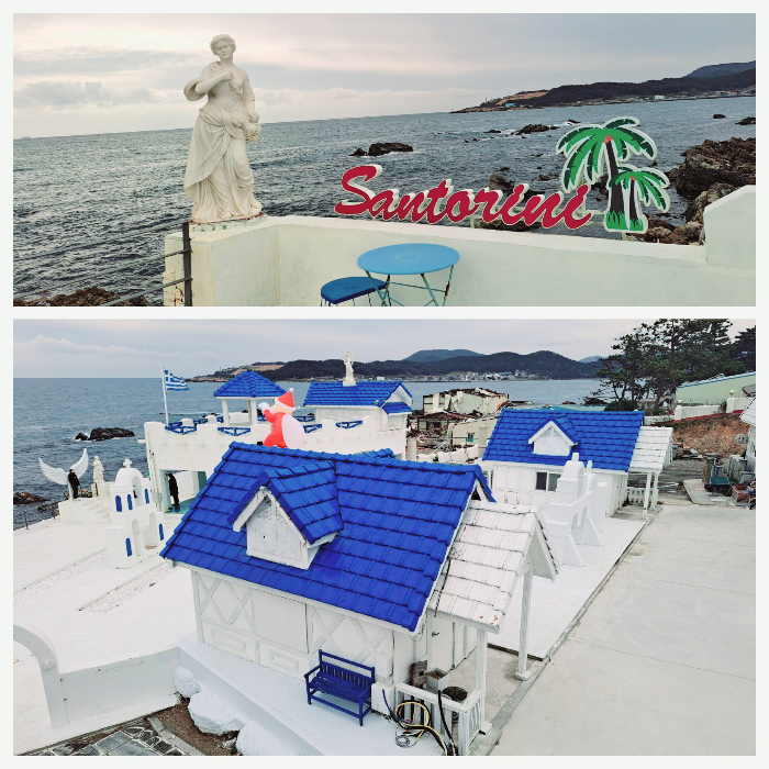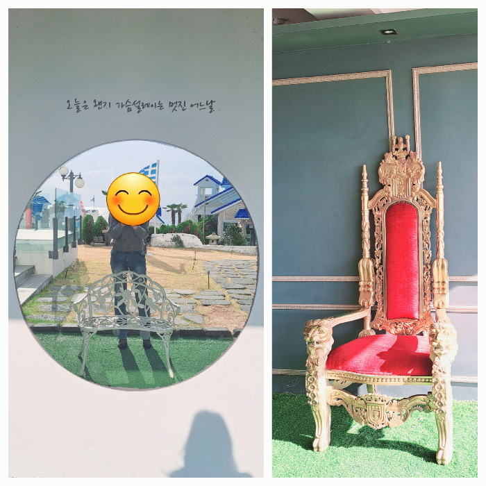 주문을 하고 자리에 앉으면 산토리니 포토존이 펼쳐지는데요.