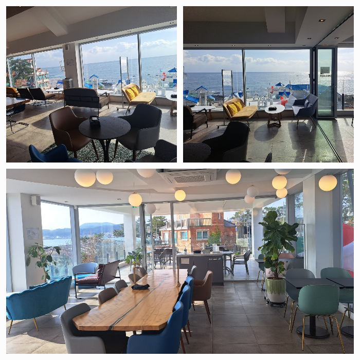 따뜻한 햇살과 뻥 뚫린 바다를 볼 수 있는 야외 자리들도 많았습니다.