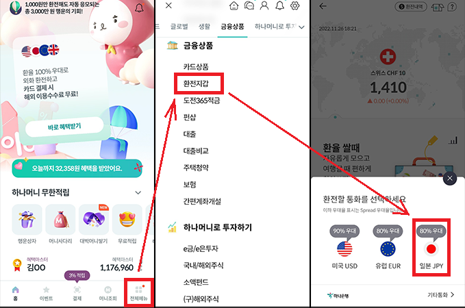 하나금융그룹의 하나머니 앱에서 수수료 80% 우대 해준다고 해서 환전을 했습니다.
