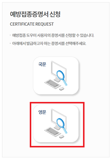 아래의 링크에서 코로나 예방접종 증명서를 발급받으세요.